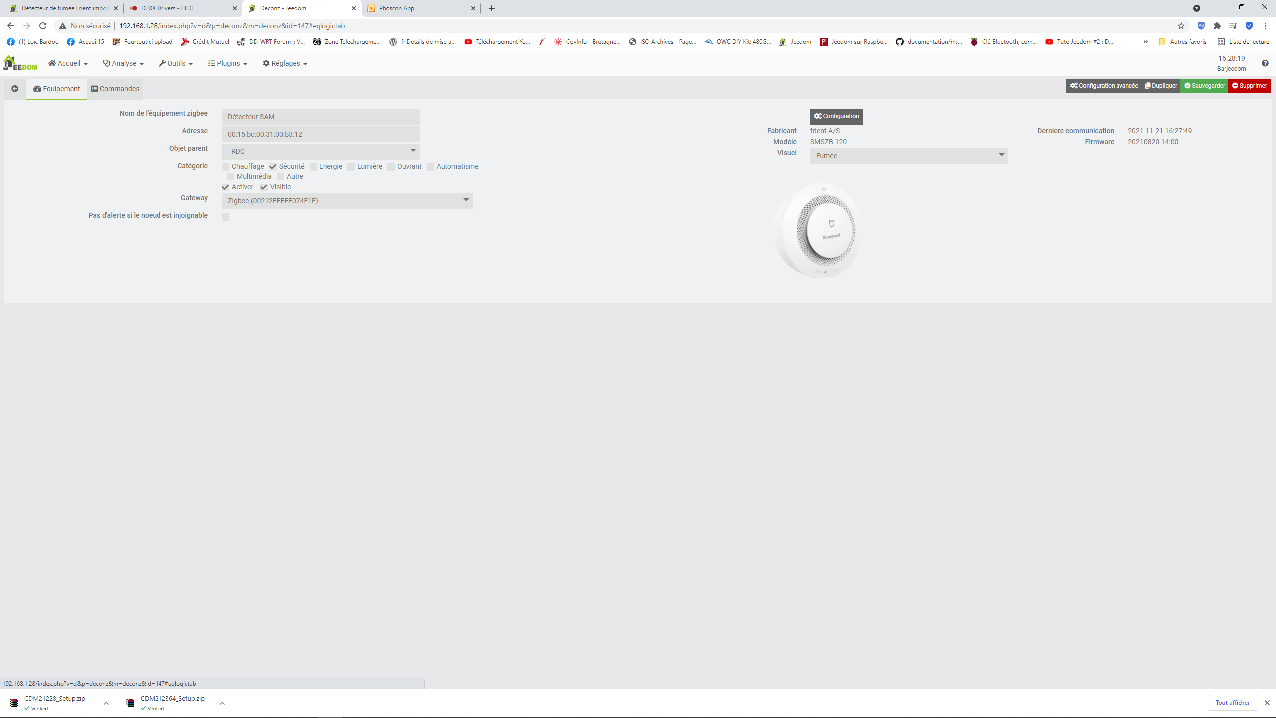 Bonjour, j’ai acheté 2 détecteurs frient sur Domadoo ce modèle :FRIENT - Détecteur de fumée intelligent Zigbee 3.0 DIN EN 14604/14676, ils sont normalement compatible Jeedom. Il m’est impossible de les faire reconnaitre avec Deconz + clé conbee2. j’ai aussi essayé avec zigbee + conbee2. J’ai mis à jour la clé conbee2(0x26580700).