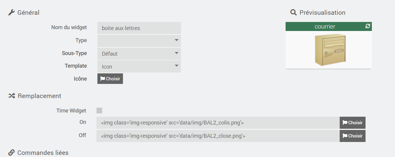 Je cherche a avoir une icone sur le design avec boite aux lettres pleine si courrier present, et vide dans le cas contraire.
