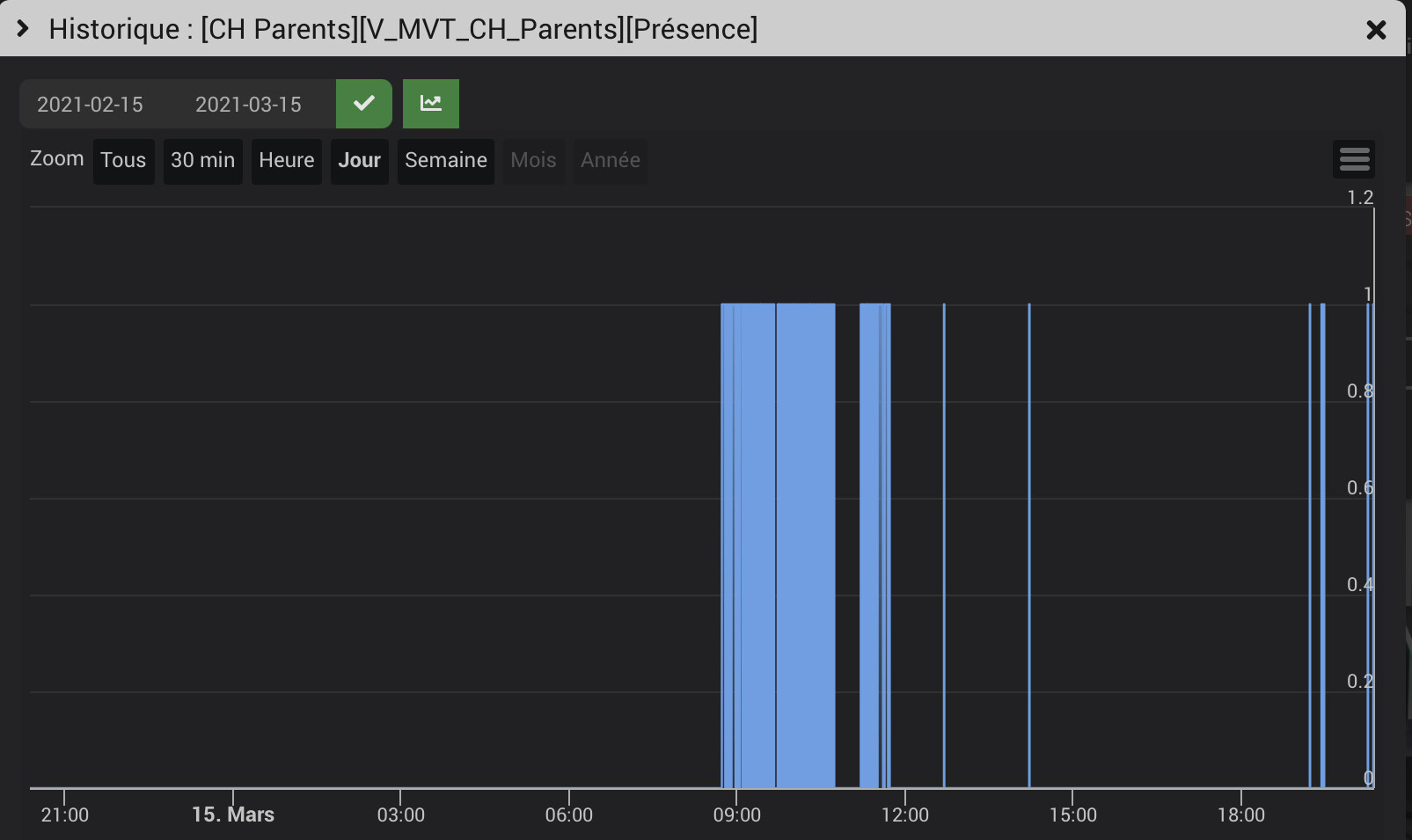 J’ai eu récemment (et c’est pas la 1er fois) un capteur qui se déclenche de manière intempestive… Les déclanchements sont réguliers genre toutes les 2H et parfois Non !! (c’est ça qui est bizarre)