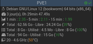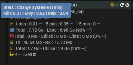 Je cherche souvent à vérifier les pics de charge et de température du jour (ou sur 24h glissants). C’est vrai qu’on peut obtenir l’info en ouvrant le graphique. Je pensais à ajouter au widget min, max ou min et max (en option pour ne gêner personne) pour une lecture directe.
