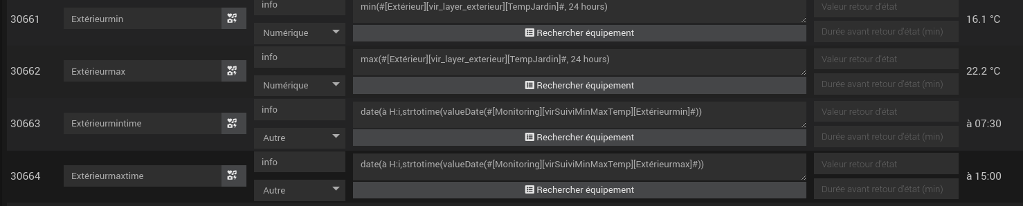 pour le (2) : hum… jamais fait cette partie là : Y’a moyen j’imagine dans jeedom de récupérer le min et moyenne et max (puisque fait dans un widget standard), mais faut que je regarde comment faire dans un widget custom pour l’intégrer.