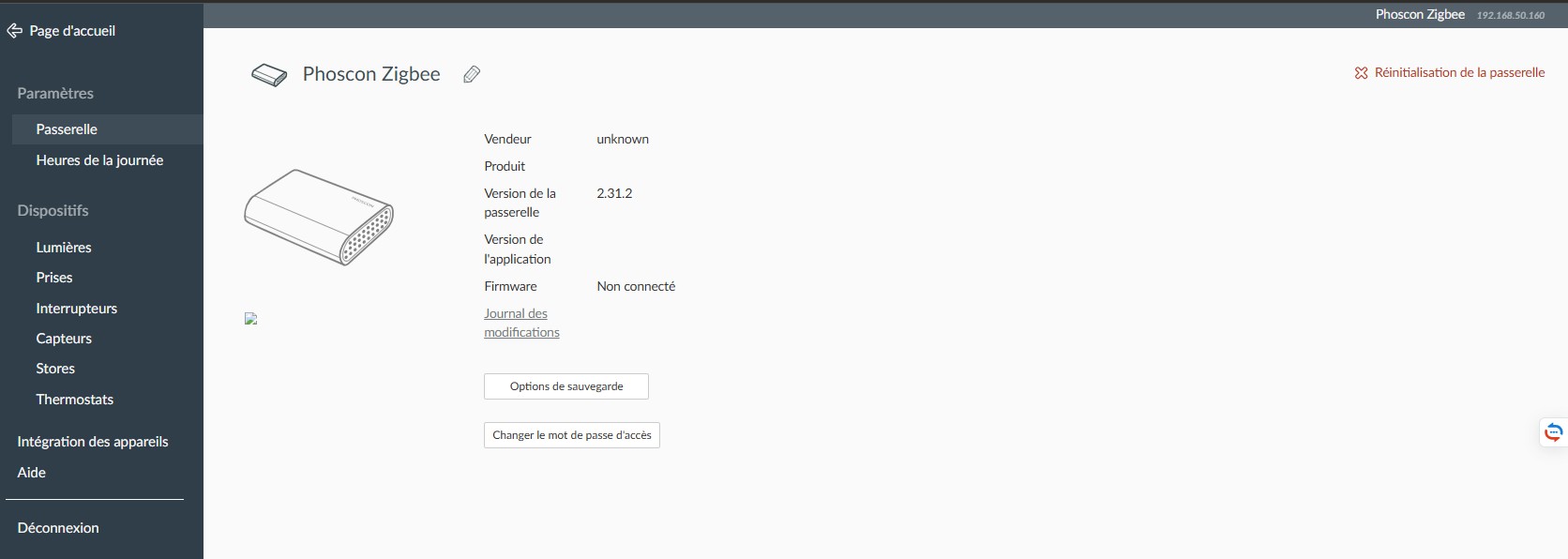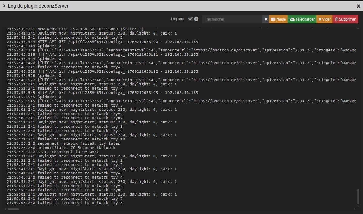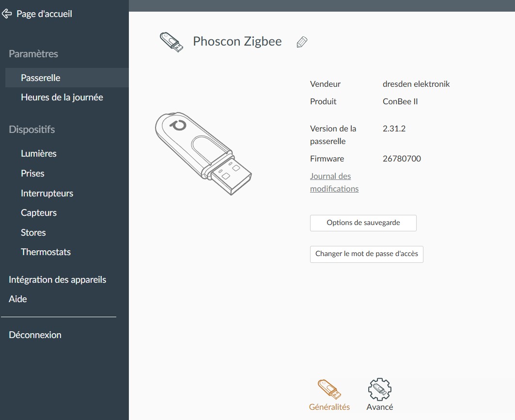 D’ailleurs j’ai essayé d’ouvrir l’interface Phoscon avec le clef débranchée et je peux saisir le mot de passe, naviguer dans les différents menus etc… Donc je ne suis même pas sûr d’avoir été réellement connecté à un moment… Quel sont vos critères pour déterminer que vous êtes bien connecté à la clef