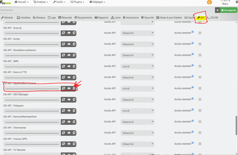 Et L’API ? celui de jeedom ou celui du plugin si il existe ?