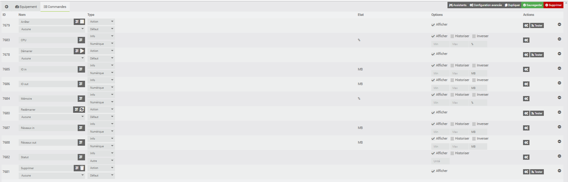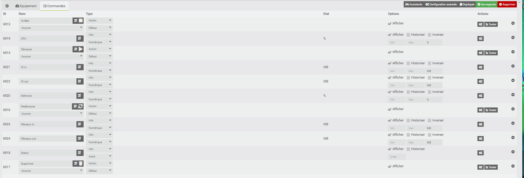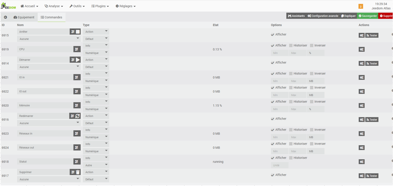 clique sur le bouton tester à coté de la commande démarrer