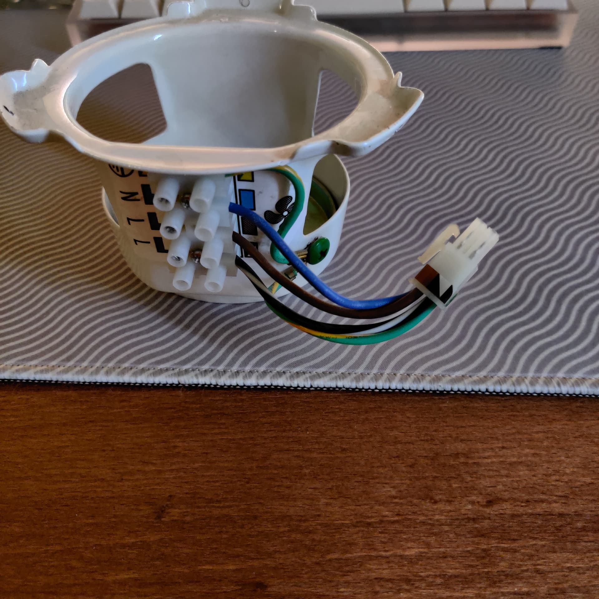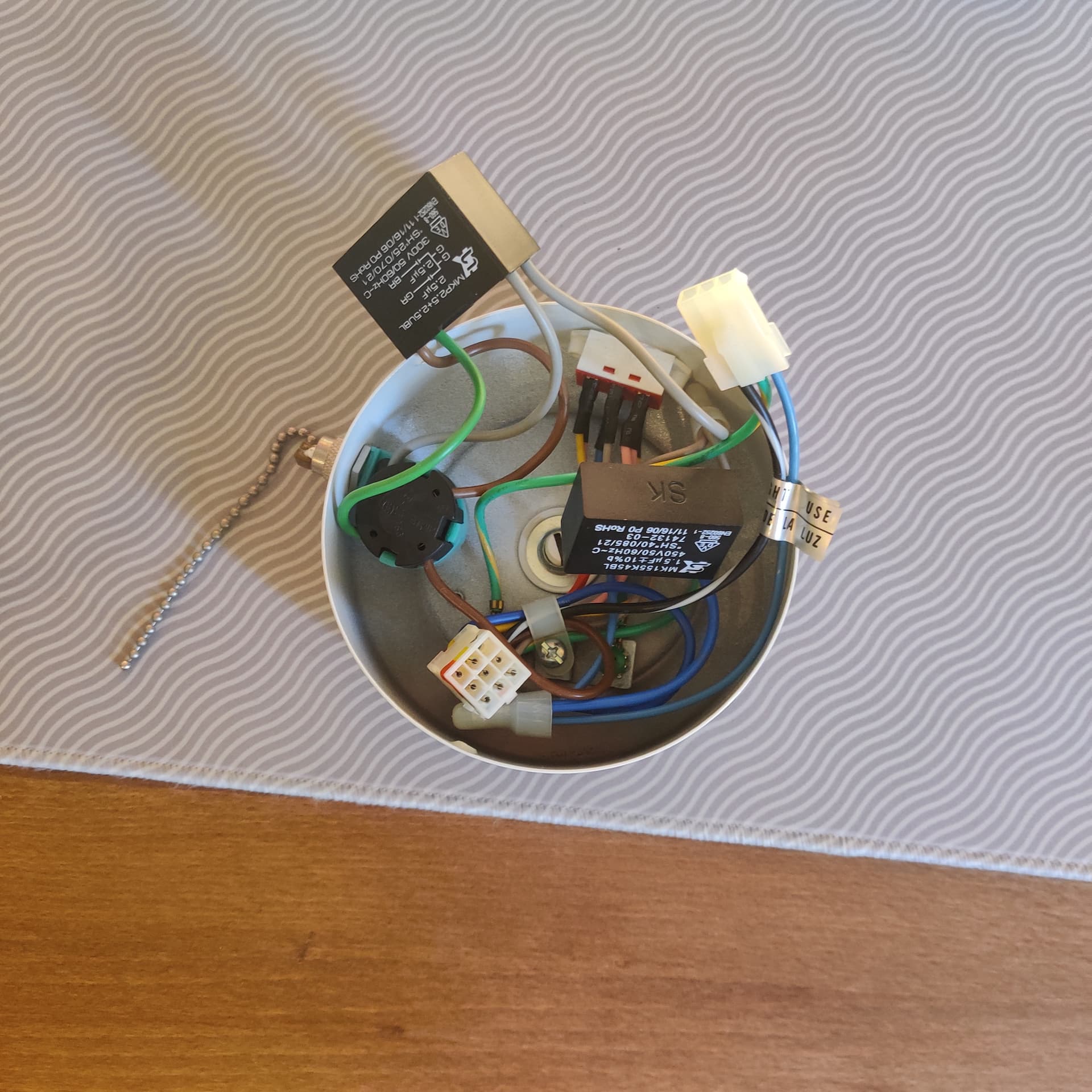 J’ai démonté l’interrupteur chainette pour comprendre le fonctionnement, il y a quatre fils :