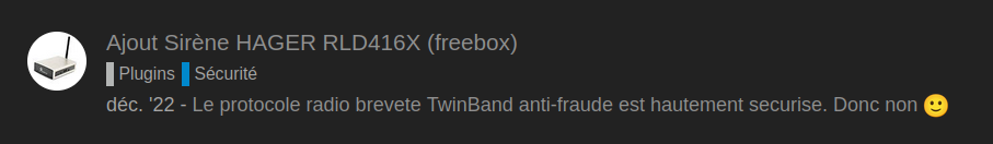 J’ai une alarm non connecté : Hager S303 -22F qui utilise une télécommande Twinband 400/800MHz.