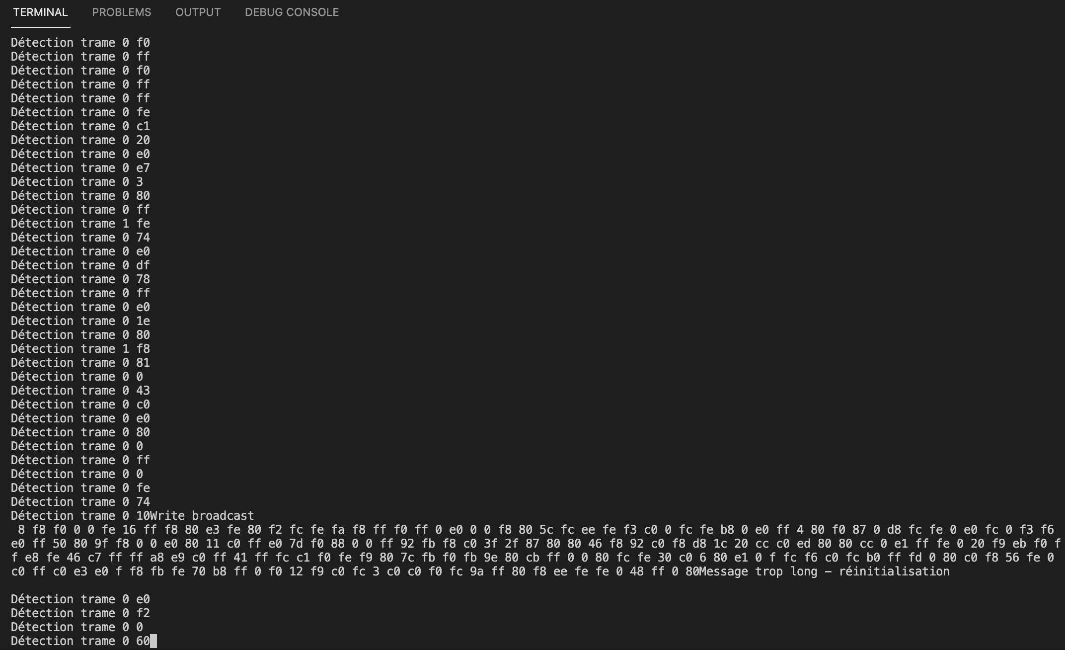 Le cable de ma PAC est de 5 fils (rouge, noir, blanc, jaune, jaune/vert) et j’ai utilisé les cables jaune et jaune/vert. J’ai vérifié que le cable est bien conecté, me je n’arrive pas a avoir des trames correctes ou completes.