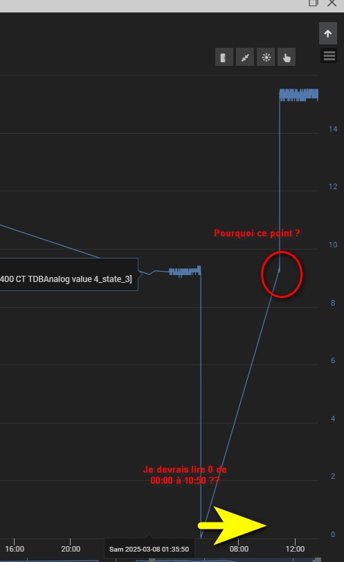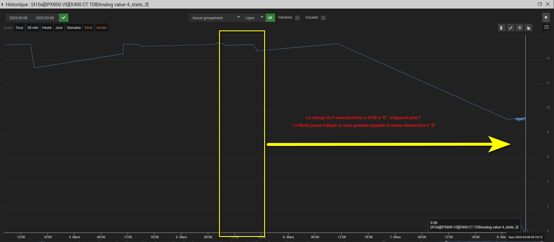Ma sonde est à 0 A (confirmé) quand je ne charge pas mon véhicule et peut indiquer 15 A en charge, puis revient à 0 A (confirmé). L’historique indique que les données ne reviennent pas à 0 A en fin de charge?