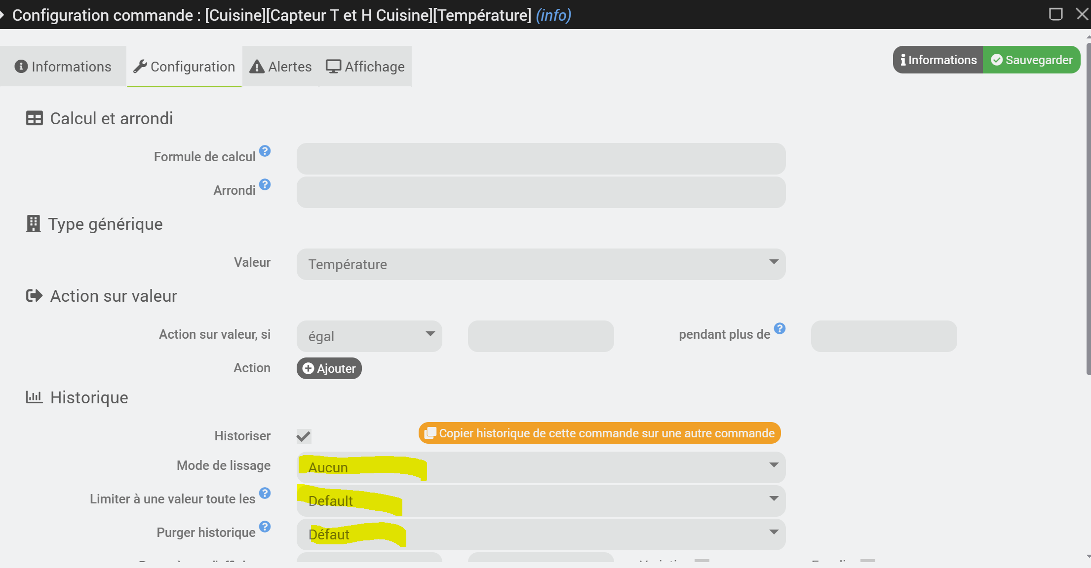 Et vous trouverez les configurations par défaut dans l’onglet « Equipements » de la configuration