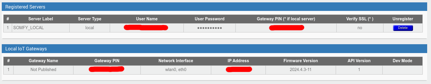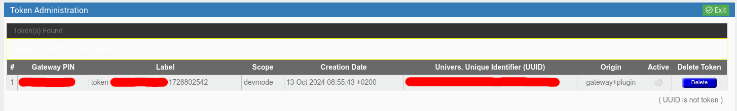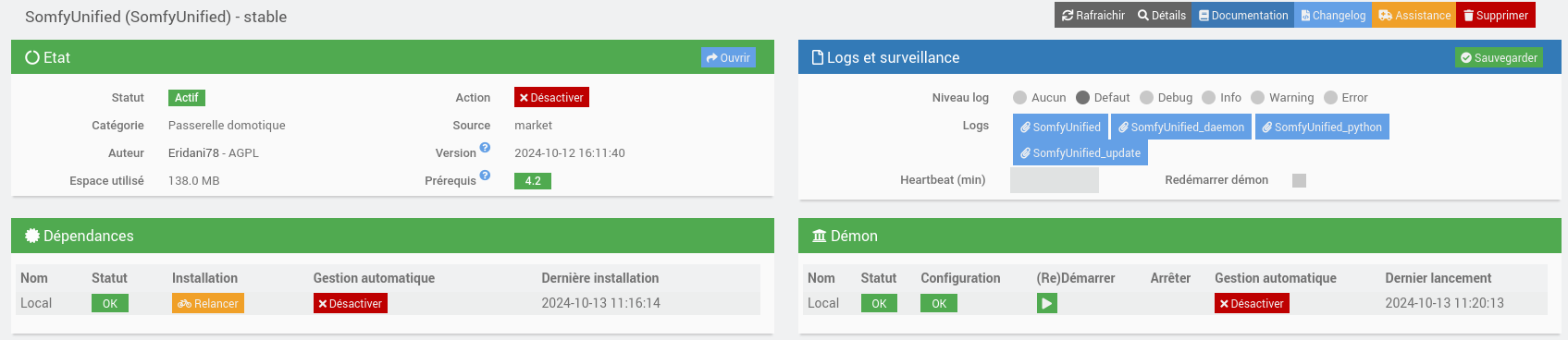 - l’origine du soucis (impossibilité de créer un Token pour le serveur Somfy Local) venait d’un bug qui empêchait l’affichage correcte de la page lorsque l’utilisateur avait une box vierge sans Token déja créé.