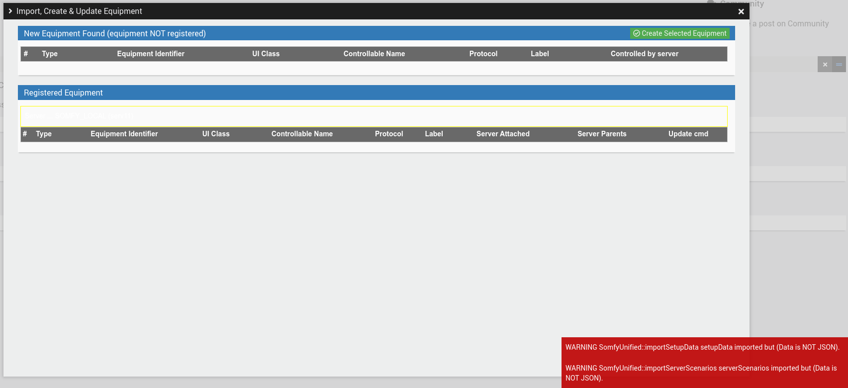 Pour qu’ils puissent être importés par le plugin, il faut que vous créiez un serveur SomfyCloud en utilisant vos identifiants habituels et importiez vos équipements ensuite.