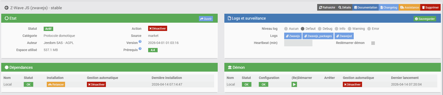 Tout est au vert dans la santé de mon Jeedom, rien de plus dans mon log de zwavejs depuis que je l’ai vidé.