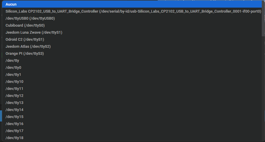 Essayer de débrancher la clé et de la rebrancher sur un autre port usb. Regarder dans les ports du plugin ce qui est alors proposé.