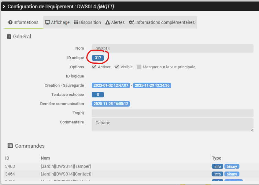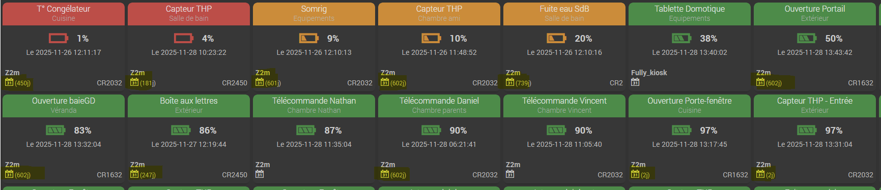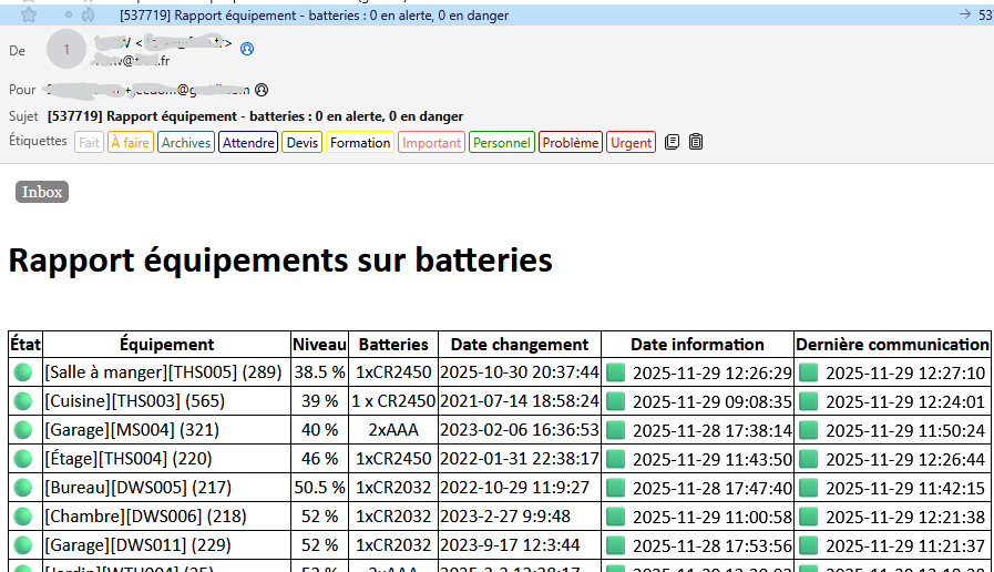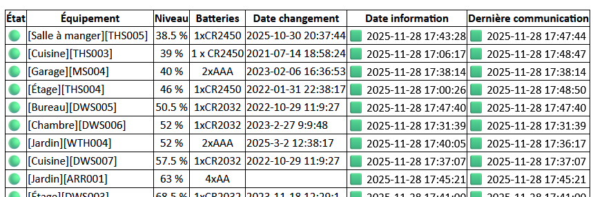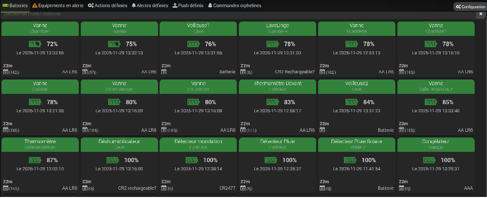 Comme je m’envoie, grâce au plug-in mail, un rapport des équipements sur piles toutes les nuits, j’ai pu rétablir tous mes équipements…