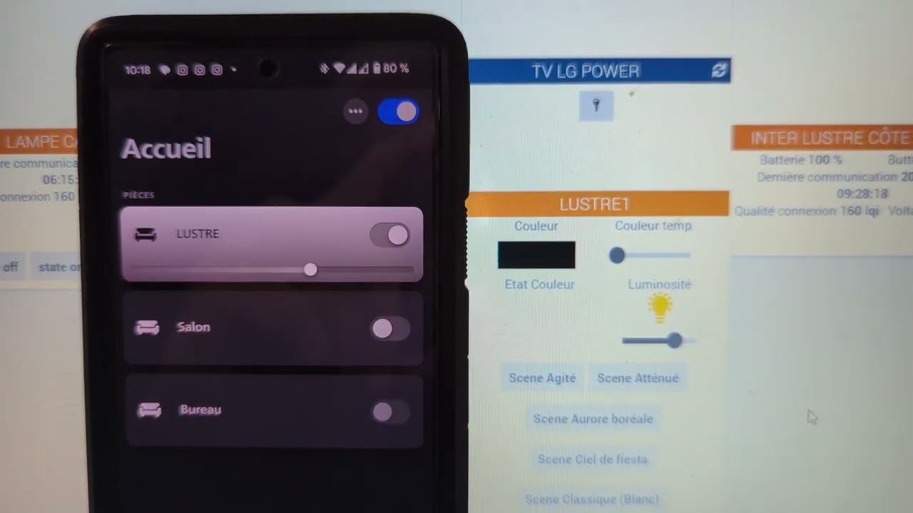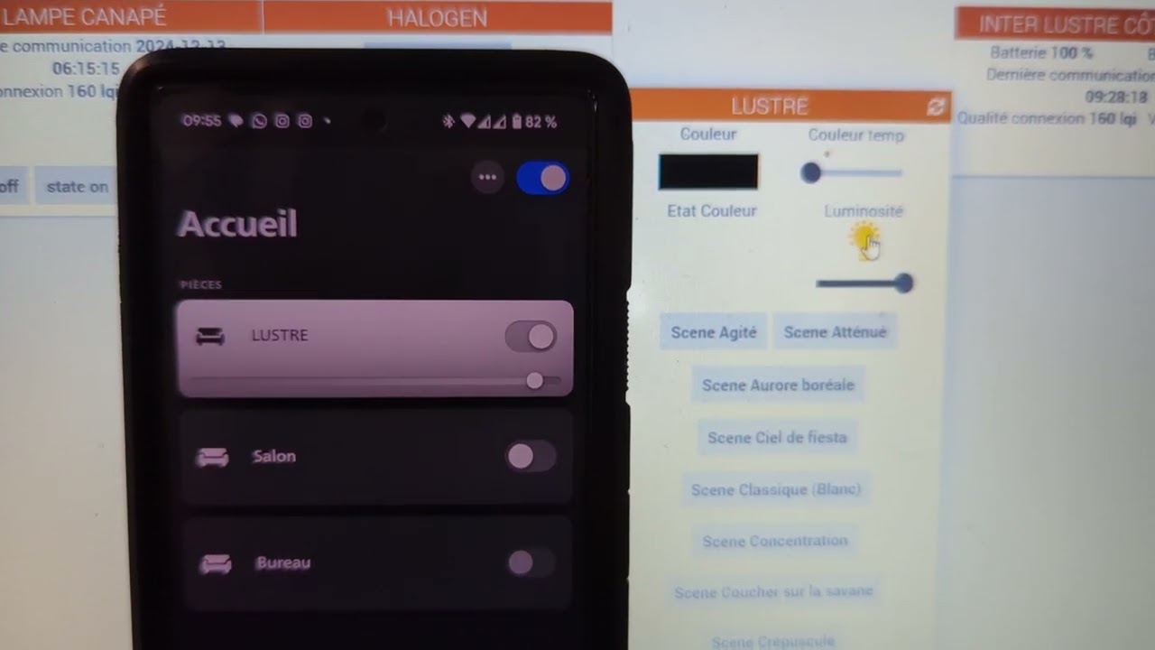 Quand je contrôle cette pièce (donc mes 8 empoules) de manière basique dans jeedom (on / off) j’ai des soucis de « pompage » et les ampoules reviennent progressivemnet a 0 de luminosité (voir vidéo ci dessous).