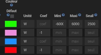 Afin d’avoir une représentation des énergies ressemblante à celle de l’application Enphase, j’ai mis le coefficient à -1 sur les courbes ‹ Consommation › et ’ Importation’.