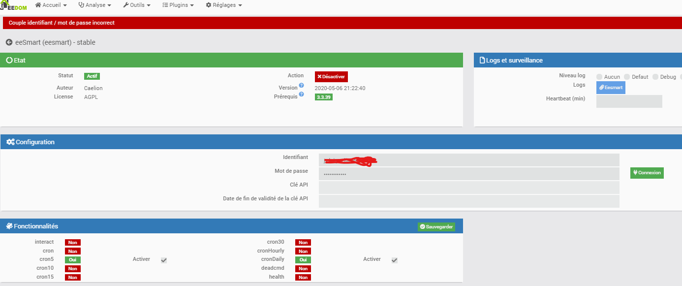 J’ai bien fais ma demande auprès de eesmart et j’ai différents numéros: clé config (hex), clé communication (hex) et iv (hex)