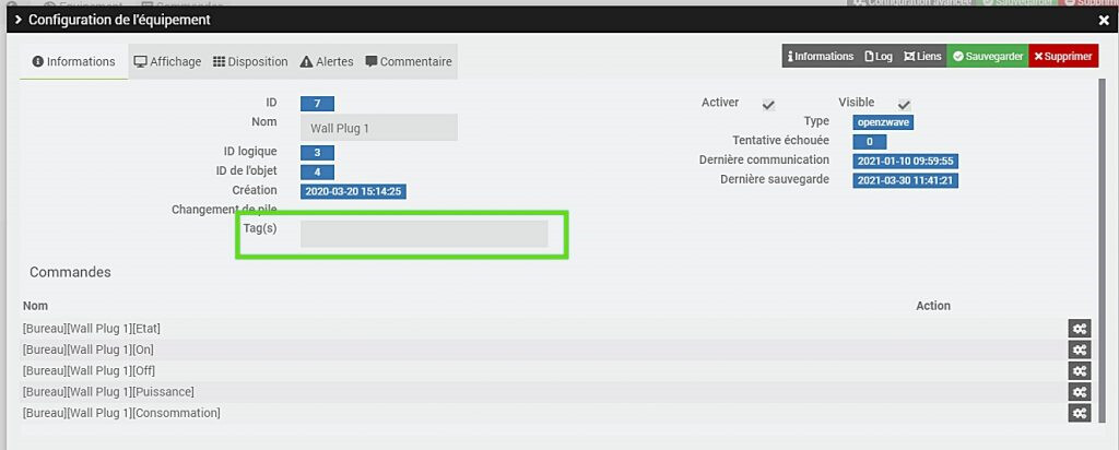 - Vérifier via le code si l’équipement existe pour prévenir de bug en cas de changement.