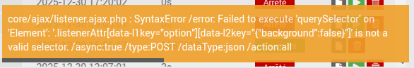 Serait ce en rapport avec dyndns qui envoit : 0012|[2025-12-30 17:22:35] ERROR : Erreur sur la fonction cron15 du plugin : Echec de la requête HTTP : https://cloud.jeedom.com/service/myip cURL error : Empty reply from server