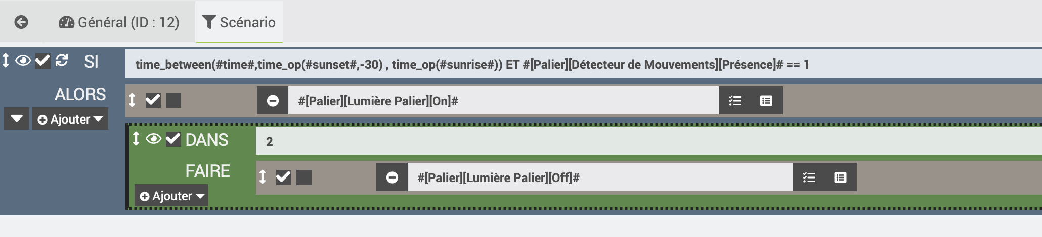 Avec le plugin Zigbee j’ai une prise électrique qui commande une lampe, j’ai également un détecteur de présence qui commande l’allumage d’une lampe zigbee sur le palier: