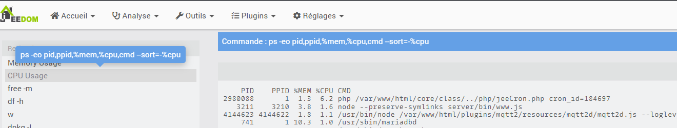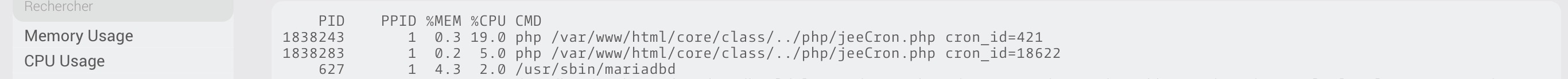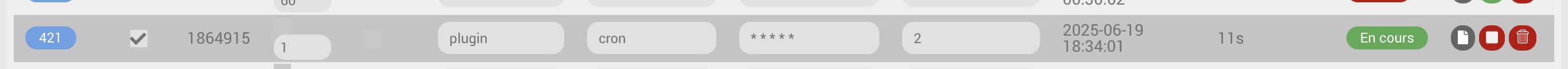 2025-06-19 14:20:01 core La tâche plugin::cron n'arrive pas à finir à cause du plugin : WebOStvLG nous vous conseillons de désactiver le plugin et de contacter l'auteur Configuration