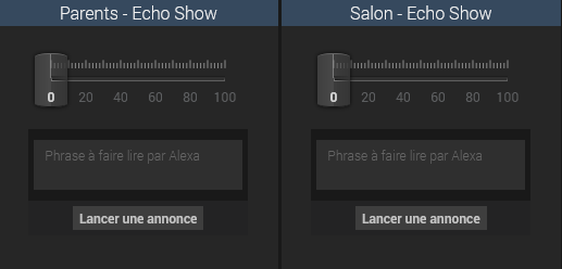 Il est possible de changer le volume et les Alexa reçoivent bien la commande et restent bien aux volumes demandés. Et la tuile du plugin AlexaAPI indique aussi ce volume.