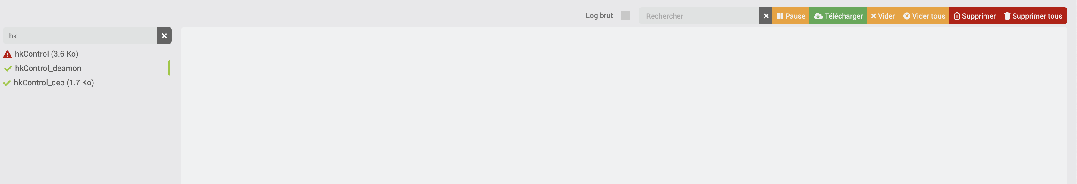 EDIT : je viens de vider les logs et relancer le deamon hkcontrol + découverte, etc. Je n’ai pas de logs de segmentation fault. Ca a du venir d’ailleurs je pense. Mais le problème de deamon sans log est toujours là ;(