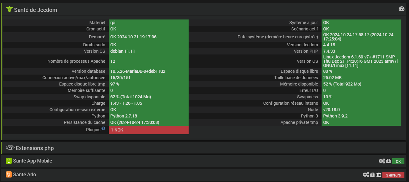 La dernière mise à jour d’Arlo nécessite Debian 11, j’ai donc réinstallé mon jeedom, Raspberry 3.
