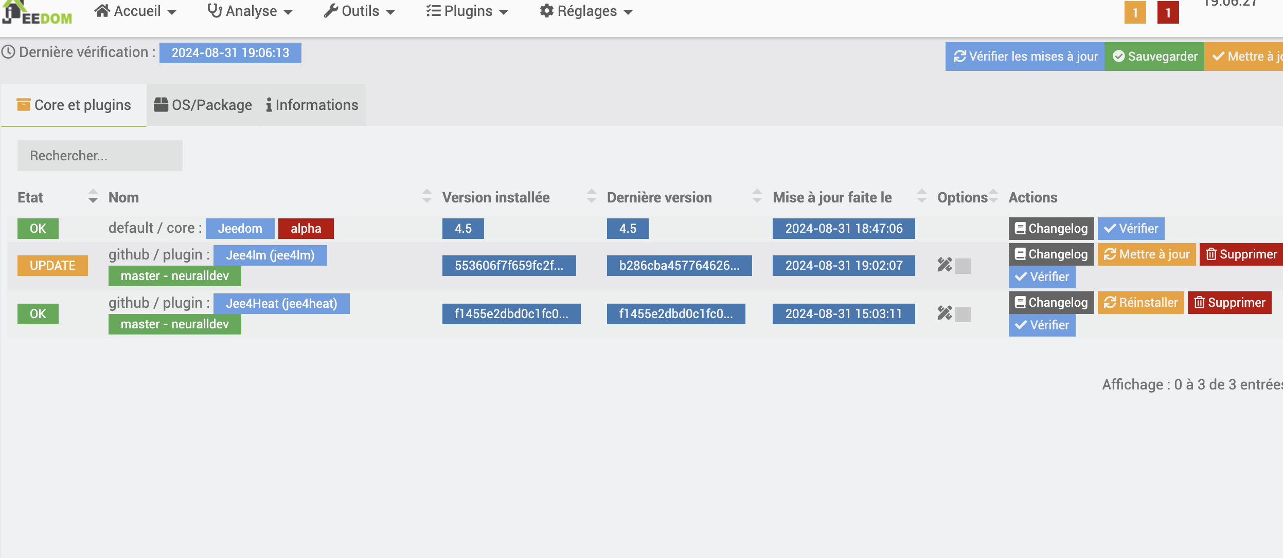 je remarque qu’en bas il y a un bug, car il affiche 2 entrée alors qu’il y a 1 plugin … à moins qu’il compte le core ?