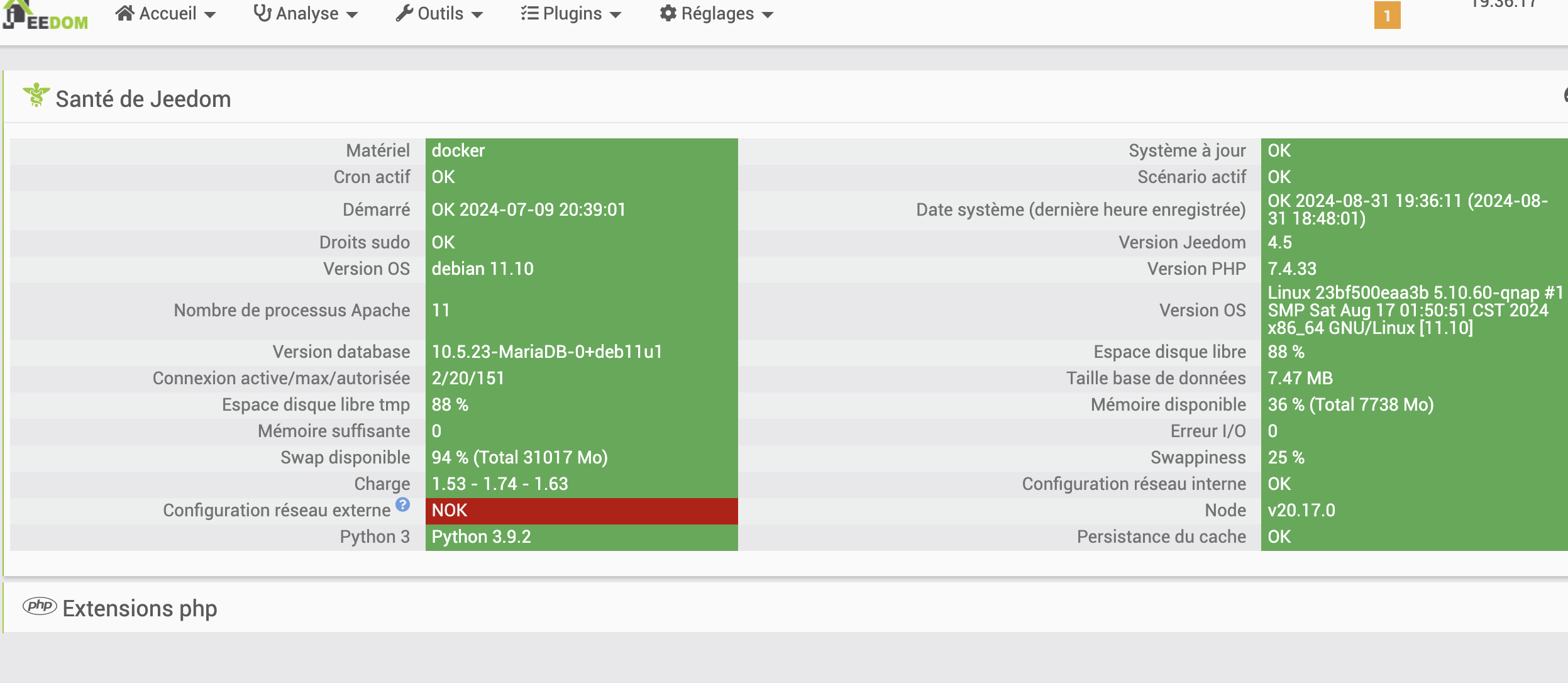 le jeedom de dev est sur docker et n’a pas accès à internet d’où le réseau externe. je n’en ai pas besoin car je teste mes plugins qui ne communiquent qu’en interne.