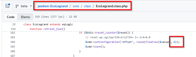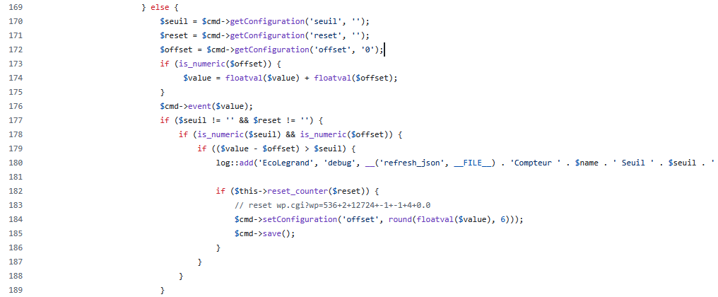 L’erreur des logs pointe vers la ligne 174 du fichier /var/www/html/plugins/EcoLegrand/core/class/EcoLegrand.class.php