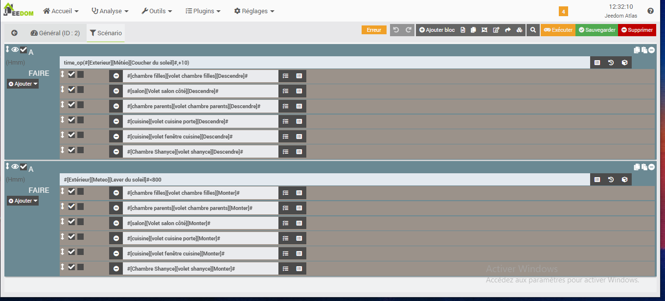 Bonjour a tous je suis débutant avec jeedom, et je voulais fermer mes volets avec le lever et coucher du soleil.