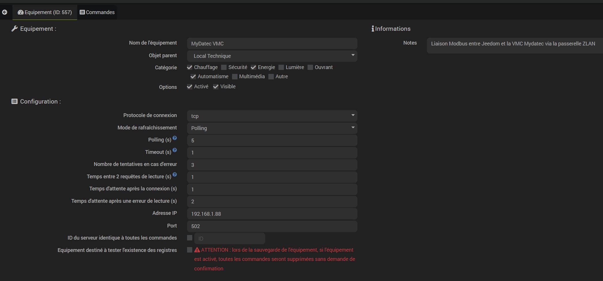 Pour information, il s’agit de communiquer en Modbus avec une VMC thermodynamique Mydatec via une passerelle ZLan en TCP to RTU vers Jeedom.
