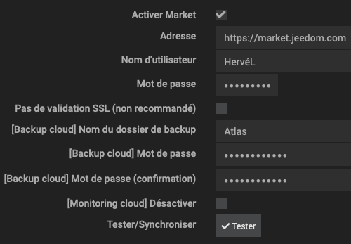 Pour me dépanner et ne pas rester sans backup, j’ai configuré une sauvegarde Samba qui fonctionne bien. Mais avec la sauvegarde market, rien à faire