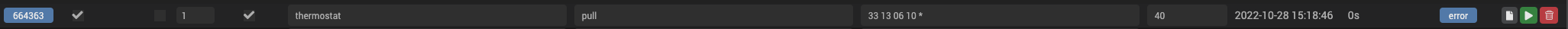 thermostat Erreur sur thermostat::pull() : Too few arguments to function thermostat::pull(), 0 passed in /var/www/html/core/php/jeeCron.php on line 78 and exactly 1 expected