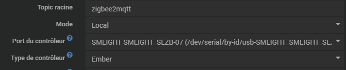Type de contrôleur est Ember mais c’est pareil en EZSP