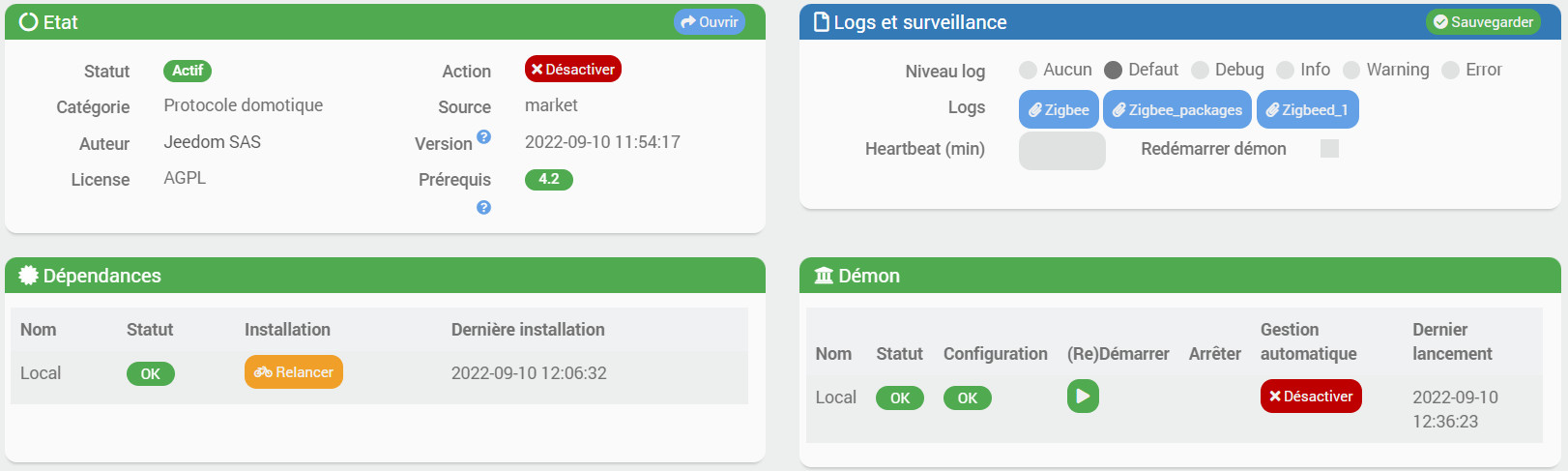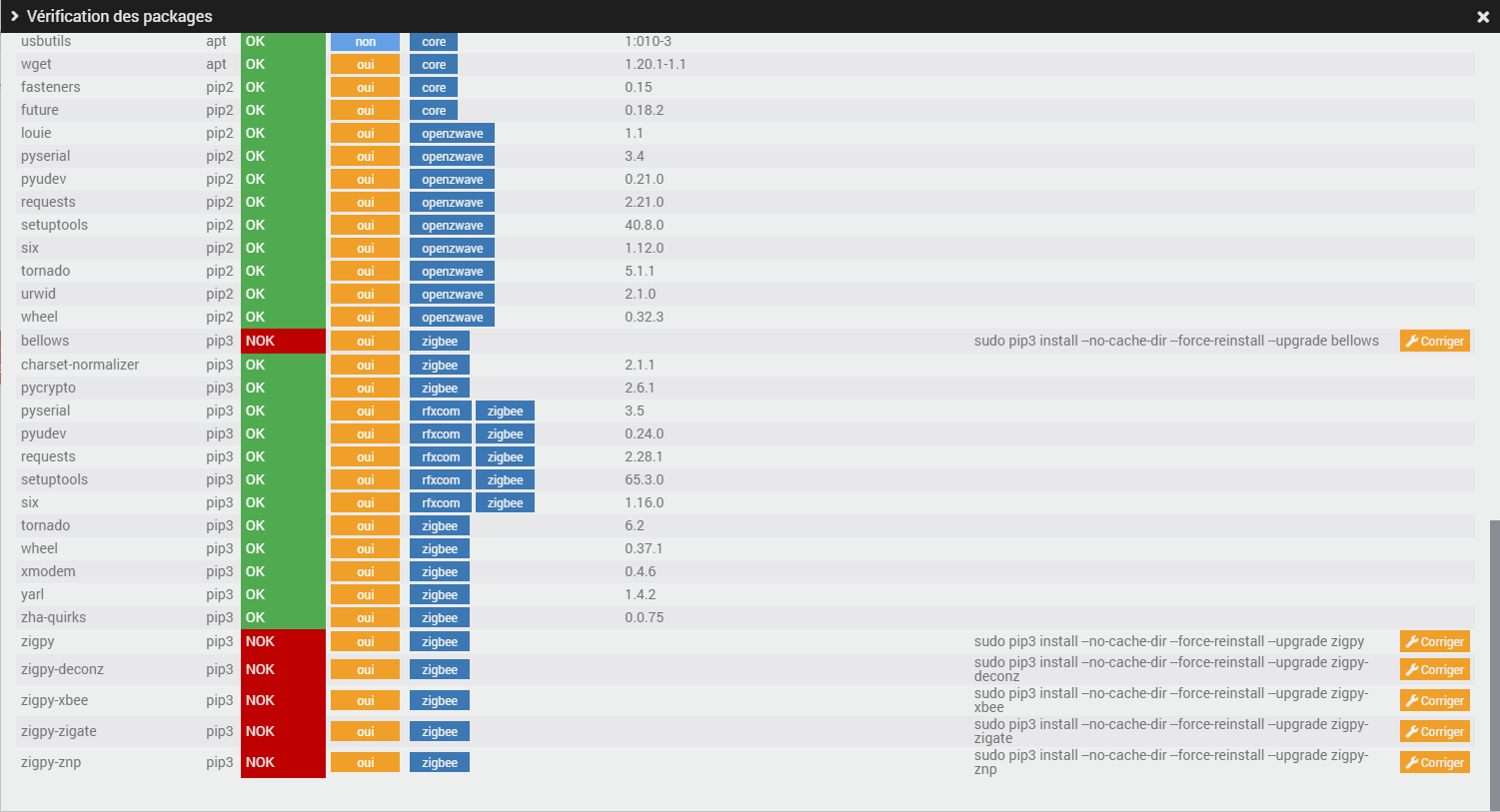 Jeedom en 4.2.21 ? Dans les package système toutes les vérifications sont ok ?
