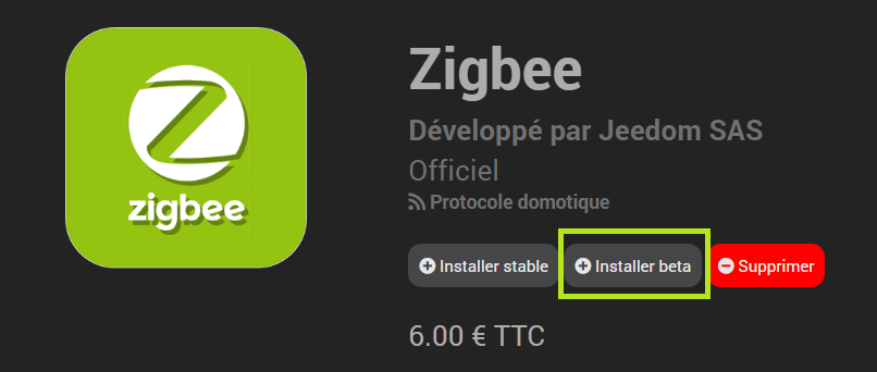Ensuite dans votre jeedom, plugin → gestion des plugins → market → ( rechercher zigbee)
