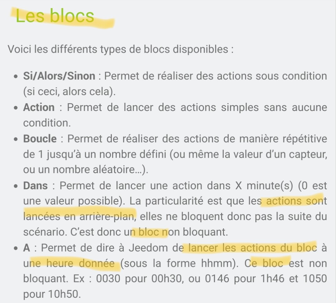 On peut avoir plein d’actions dans un bloc A/DANS et ce que l’on dit ici c’est qu’un bloc A/DANS dénommé blocA sera reprogrammé si le scénario est exécuté à nouveau, la programmation (de l’ensemble des actions de ce bloc là) ne sera pas ajouté sans retirer la précédente programmation.