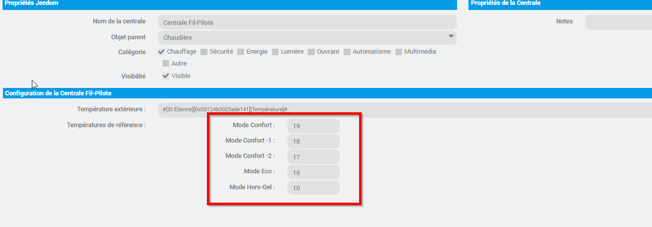 Par contre il faut bien comprendre qu’il s’agit ici d’une indication pour affichage statique dans le widget, pas d’une température pour une fonction de type thermostat.