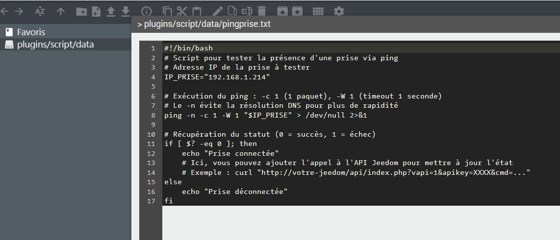 Mais ça serait beaucoup s’embeter pour pas grand chose étant donné que pour un cas d’usage « simple » comme celui dont tu parles (vérifier si un équipement répond ou pas au ping), plusieurs plugins le gèrent nativement.