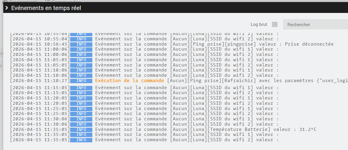 🟢 Date système (dernière heure enregistrée) : OK 2026-04-15 11:19:51 (2026-04-15 10:26:03)