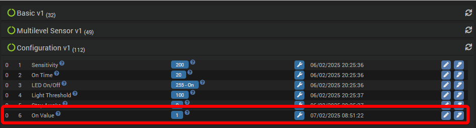 Il faut ajouter la commande ci-dessous et mettre 1 au lieu de 255 (de base l’EZmotion envoie un 255 sur détection de mouvement ce qui n’est pas vraiment binaire …)
