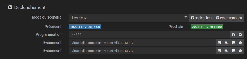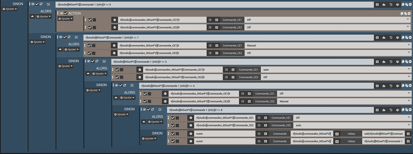 Et pour être complet, le scénario utilise un équipement virtuel « Commandes_MSunPV » avec les commandes suivantes :
