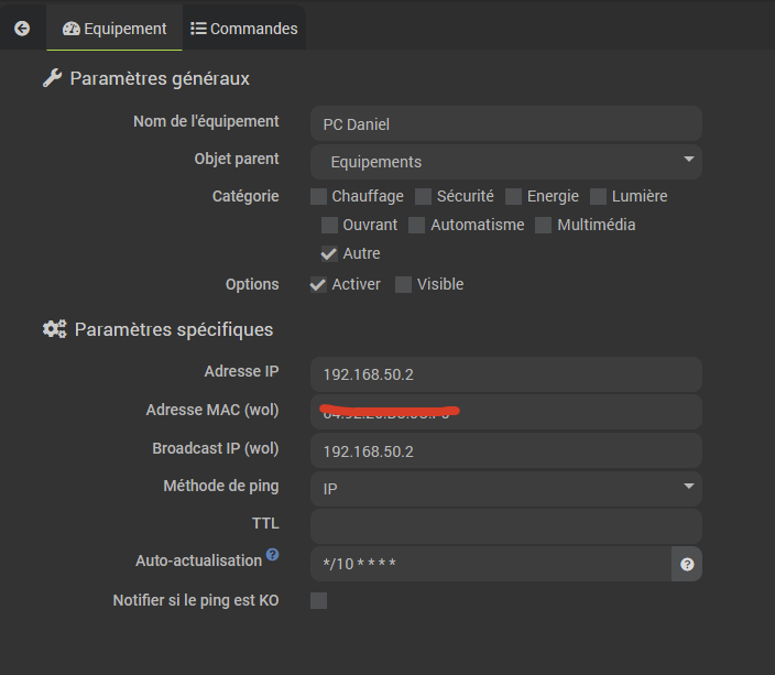 Ce que je n’arrive pas à faire c’est créer une commande info qui remonte l’état du PC à Jeedom …