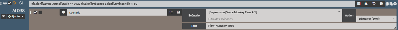 Si par la suite vous créez d’autres Flows sur la console, pour les appeler depuis Jeedom, il vous suffira d’appeler le scénario avec pour tag le numéro du flow concerné.
