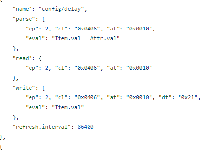 J’ai regardé un peu et je comprends un peu mieux comment rajouter une commande… Pour tester et ça peut être aussi du plus pour moi j’ai essayé l’exemple de la batterie. Mais il me semblerait qu’il me manque des informations dans mes données brutes. Car il faut récupérer les informations « uniqueid » de la section ZHAbattery que je n’ai pas, di coup je suis bloqué… Et je n’ai pas non plus dans mes informations brutes l’id pour config/delay qui devrait me permettre de temporiser mes detections.