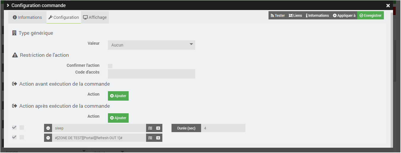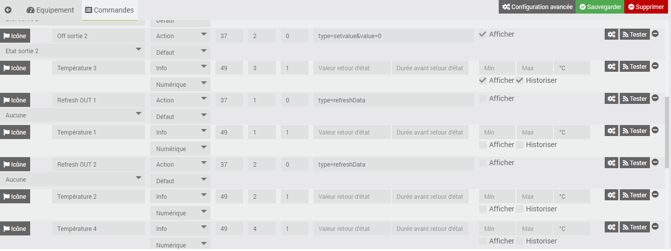 Essai dans config : actualiser les paramètres et ensuite sauvegarder dans équipement