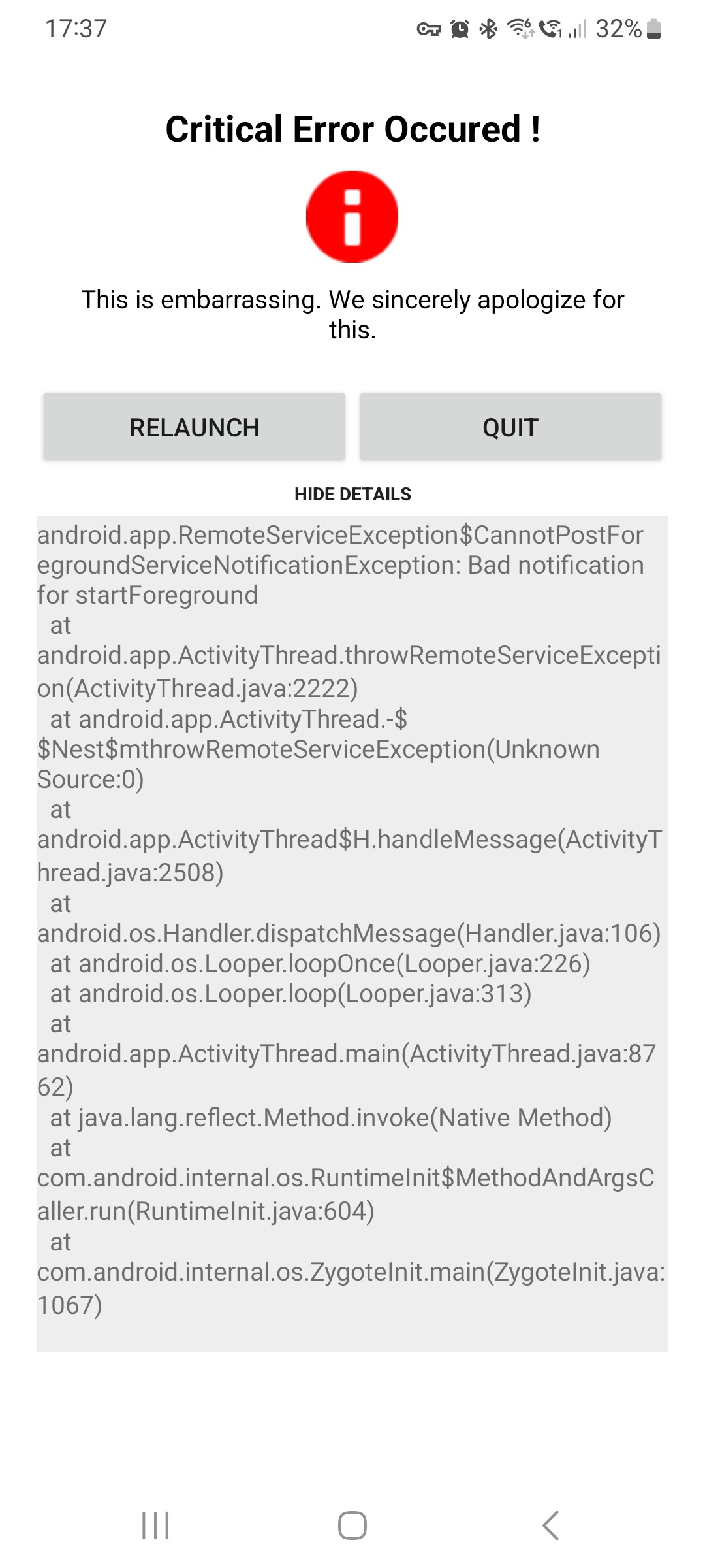 Edit du lendemain 4- Suite à ces trois problèmes, l’appli ne se lance même plus sur mon xiaomi (Tel Seb). crash au lancement.