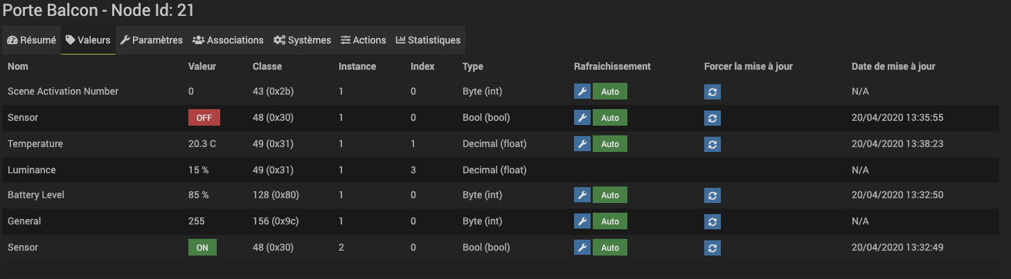 Bon je viens de recevoir des piles neuves. Je viens de changer la pile d’un autre capteur (le même) et la tout impeccable et effectivement dans paramètres rien à voir …